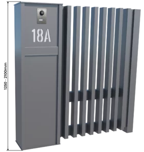 Die Abmessungen des Sockels und der Überdachung betragen 500x285 mm, während der Pfosten selbst 490x275 mm misst. Dies ist darauf zurückzuführen, dass der Sockel und das Vordach auf jeder Seite 5 mm über die Kontur des Pfostens hinausragen, um die Dichtigkeit und Stabilität der Struktur zu gewährleisten. Wir bieten Ihnen ein beliebiges Höhenmaß zwischen 1250 und 2100 mm an. Denken Sie jedoch daran, dass für eine bequeme Nutzung, sowohl der Gegensprechanlage, als auch der Videosprechanlage das Außenpaneel in einer Höhe von ca. 1500-1600 mm über dem Boden angebracht sein sollte.